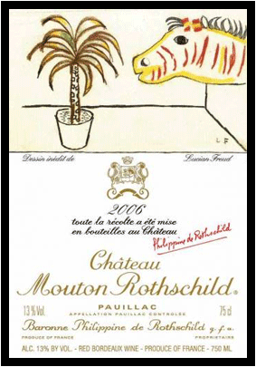 2009년 2월 에 공개된 '2006년 빈티지 와인 레이블'. 세계적 심리학자인 프로이드의 손자인 루시앙 프로이드(Lucian Freud)가 직접 디자인했습니다. 그는 뉴욕 크리스티 경매에서 'Benefits Supervisor Sleeping' 이란 누드화가 3360만 달러에 팔리는 등 생존 화가중에 그림값이 가장 비싼 화가입니다. |