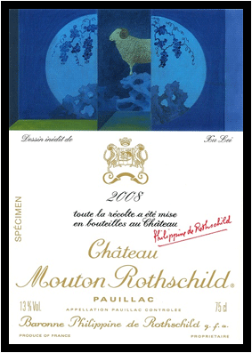 2010년 11월에 발표된 '2008년 와인 레이블'의 디자인은 중국인 화가가 맡았습니다.슈레이(Xu Lei)라는 중국 현대 미술가로서 샤토 무통 로쉴드의 레이블에 회사의 상징 동물인 양과 블루톤의 색감을 넣어서 표현했습니다.