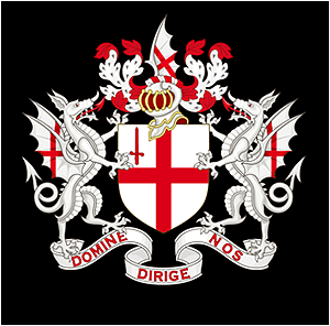 영국 시티 오브 런던(City of London)의 공식 문장입니다. 방패, 투구, 투구장식, 투구 깃, 모토가 쓰여진 리본등의 모든 장식들이 갖춰진 완전문장 형태입니다.방패 양쪽에는 용 두 마리가 있고 가운데 레드 크로스(red crosses)가 그려진 방패를 함께 들고 있습니다.