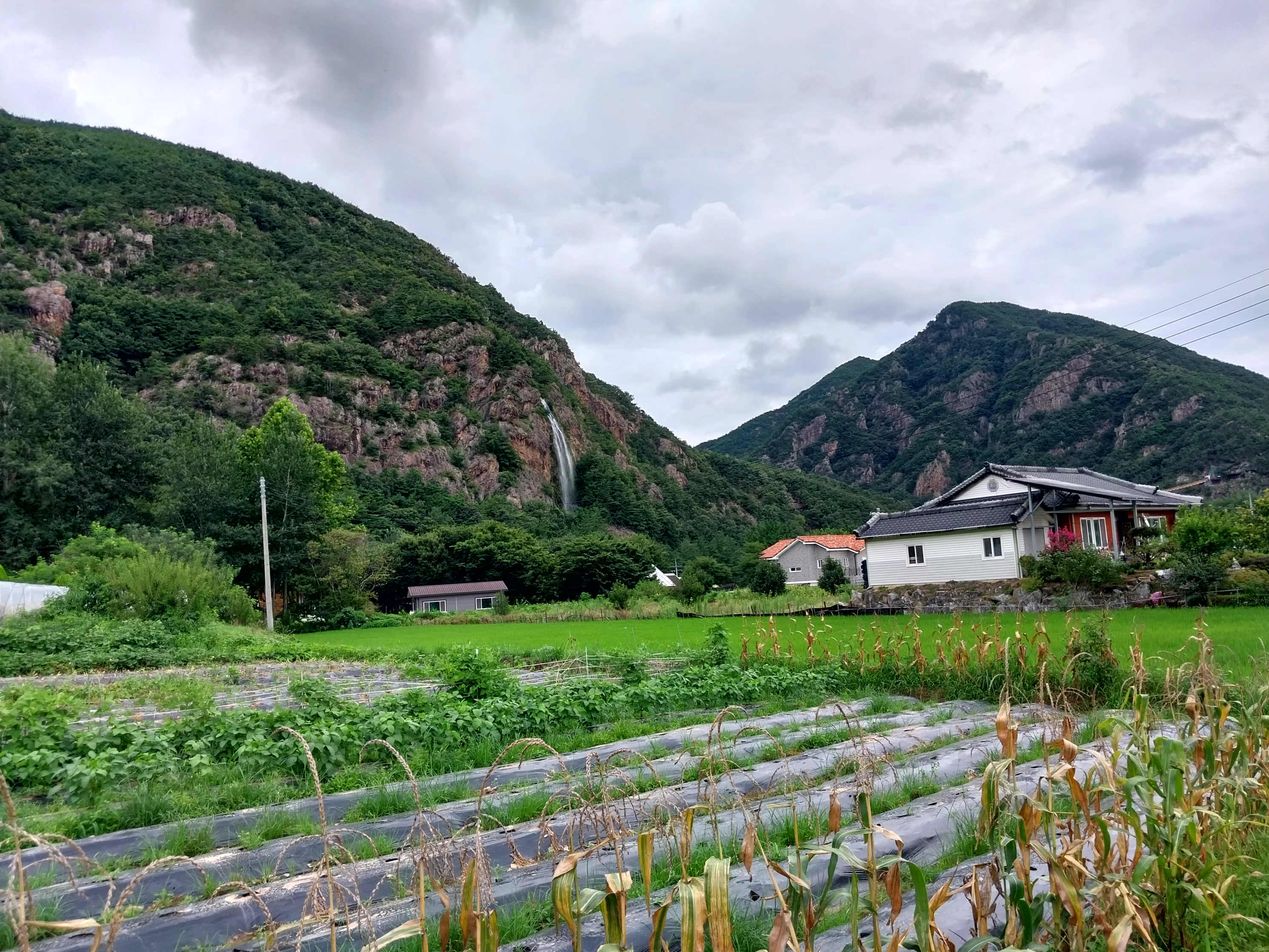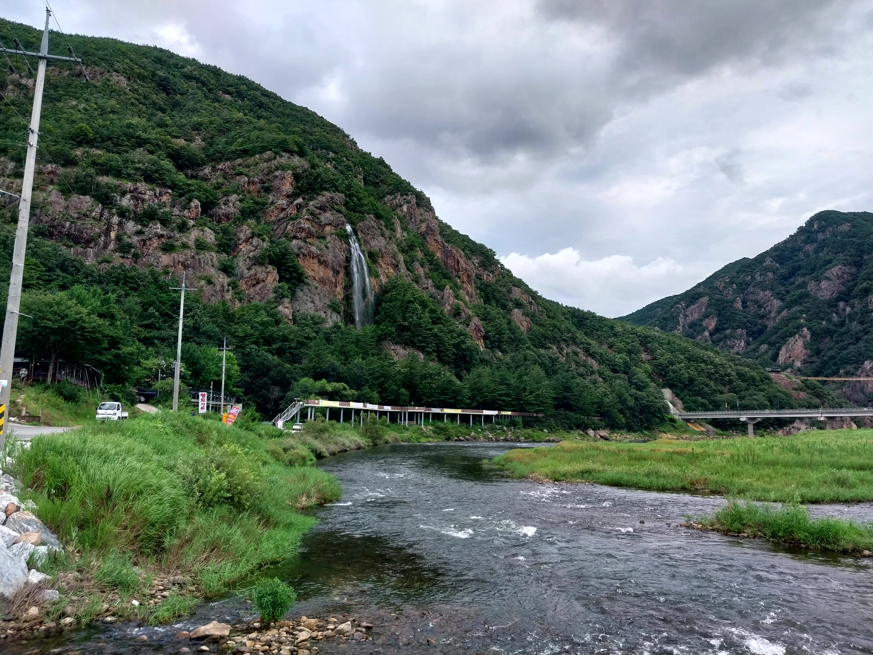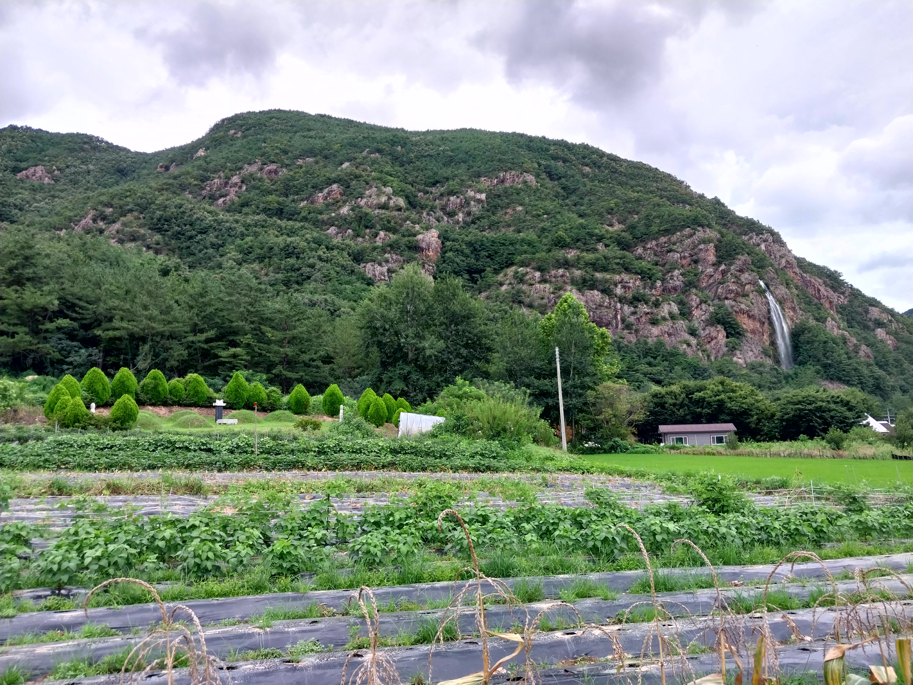 ▲마을을 지나 돌아보니 인공폭포가 보입니다.
