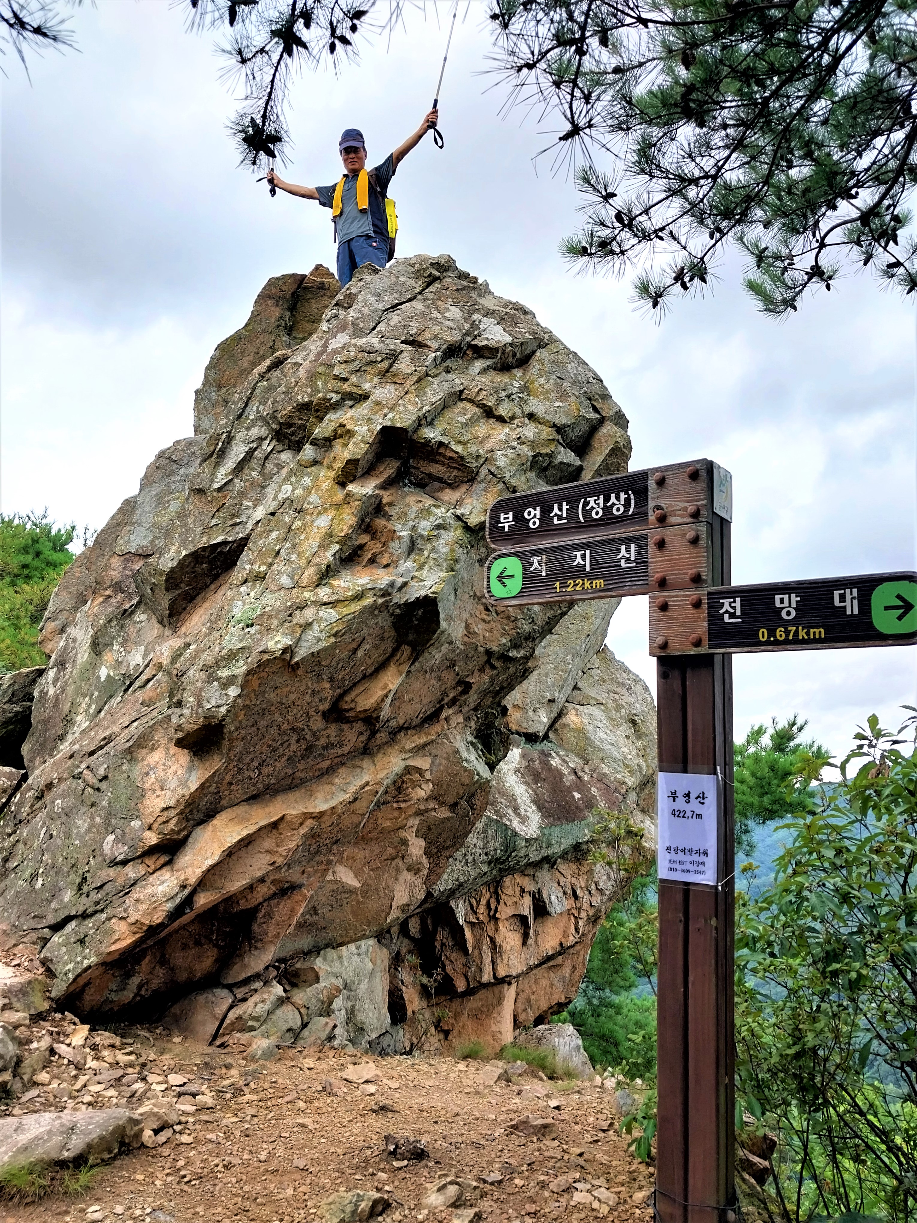 ▲부엉산 정상입니다. 정상석은 없네요. 우리는 정상 지나서 갈림길로 내려가기로 합니다.