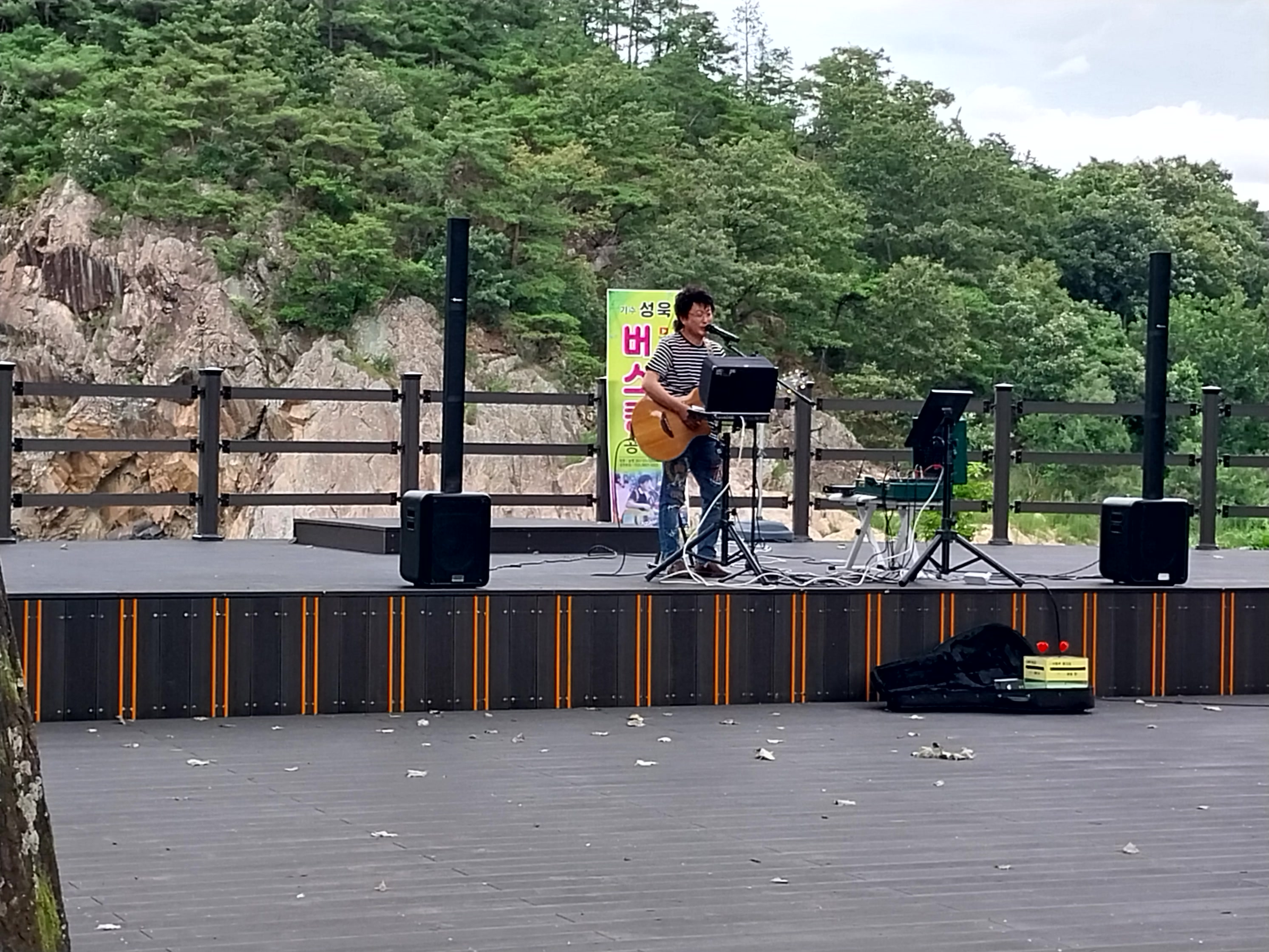 ▲주차장 옆 공연장에서는 가수 성욱씨의 거리공연이 있네요.