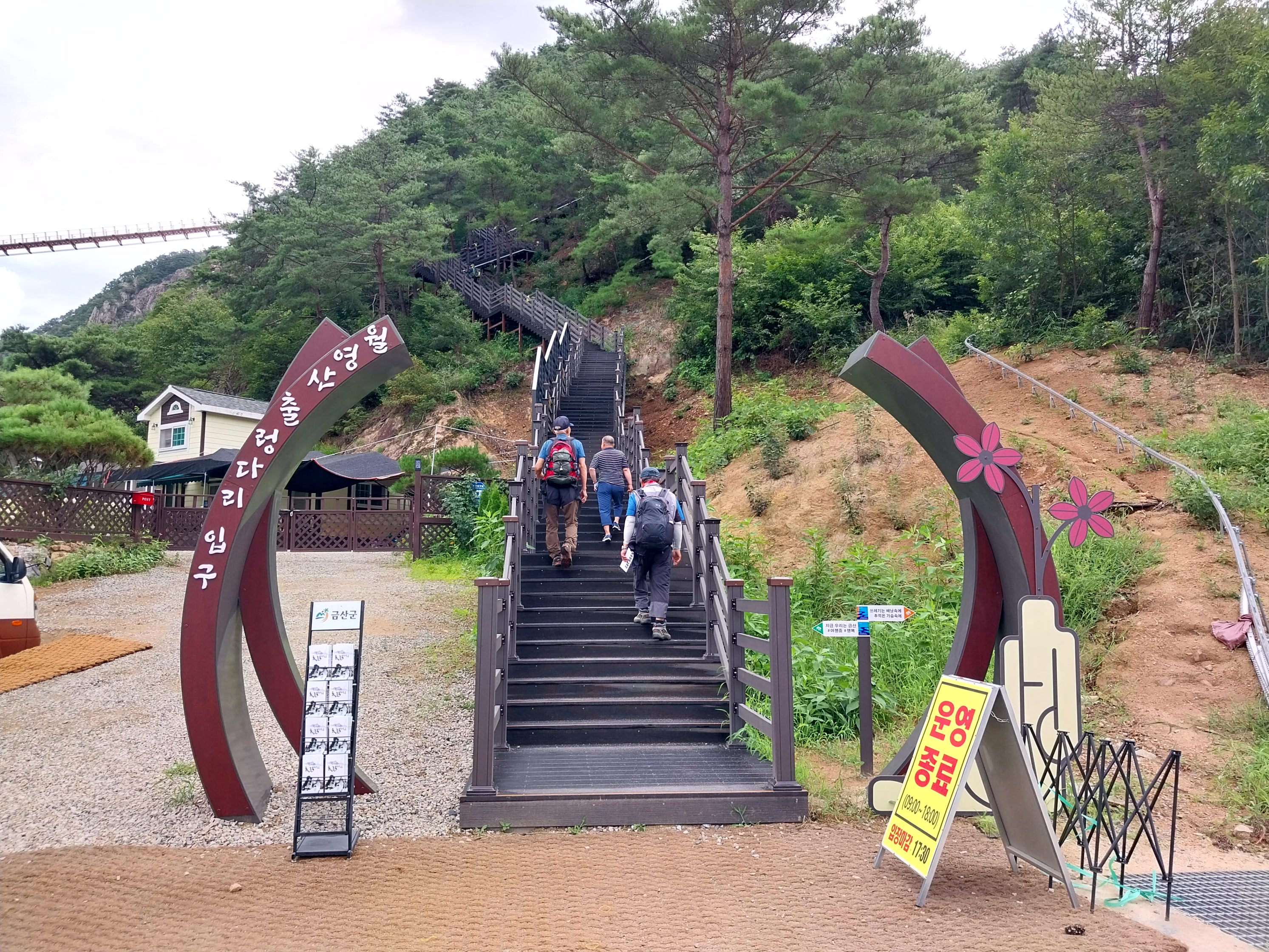 8월 9일, 원래 제천 망덕봉과 얼음골을 가기로 했으나 중부 이북으로 하루 종일 비가오는 관계로 충남 금산의 월영산 쪽으로 가서 출렁다리와 월영산이나 맞은편의 부엉산을 다녀오기로 하였습니다.