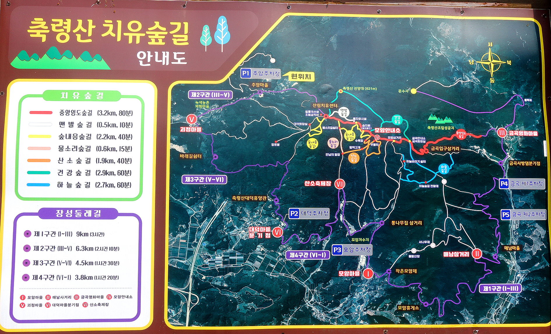 ▲ 이 지도는 우측이 북쪽입니다. 윗쪽의 보라색, 하늘색, 빨간색길 일부를 다녀 왔는데 전체구간은 상당히 넓으네요.