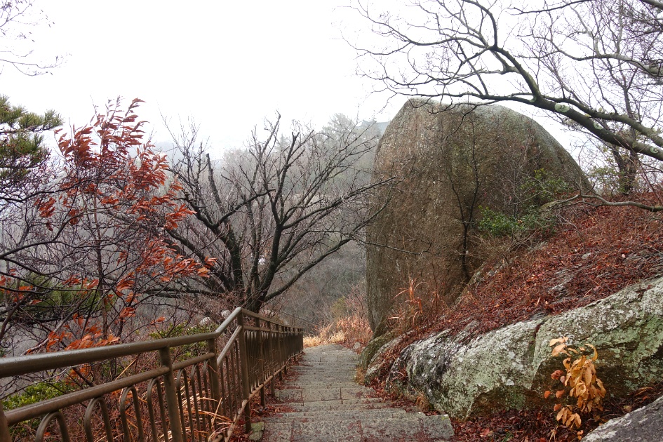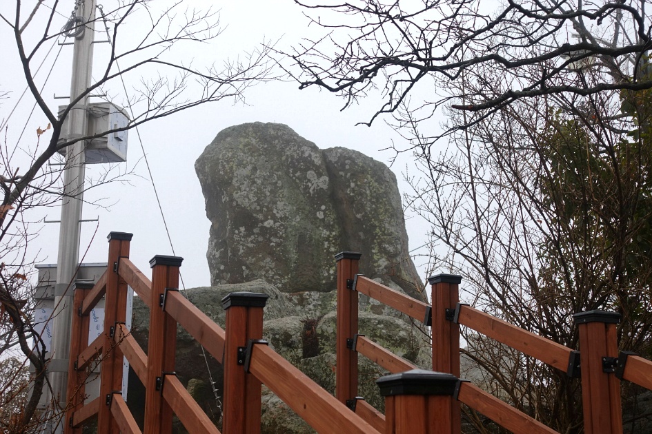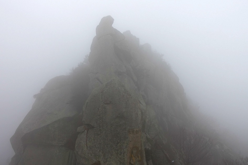 일등바위는 안개속에 희미합니다.