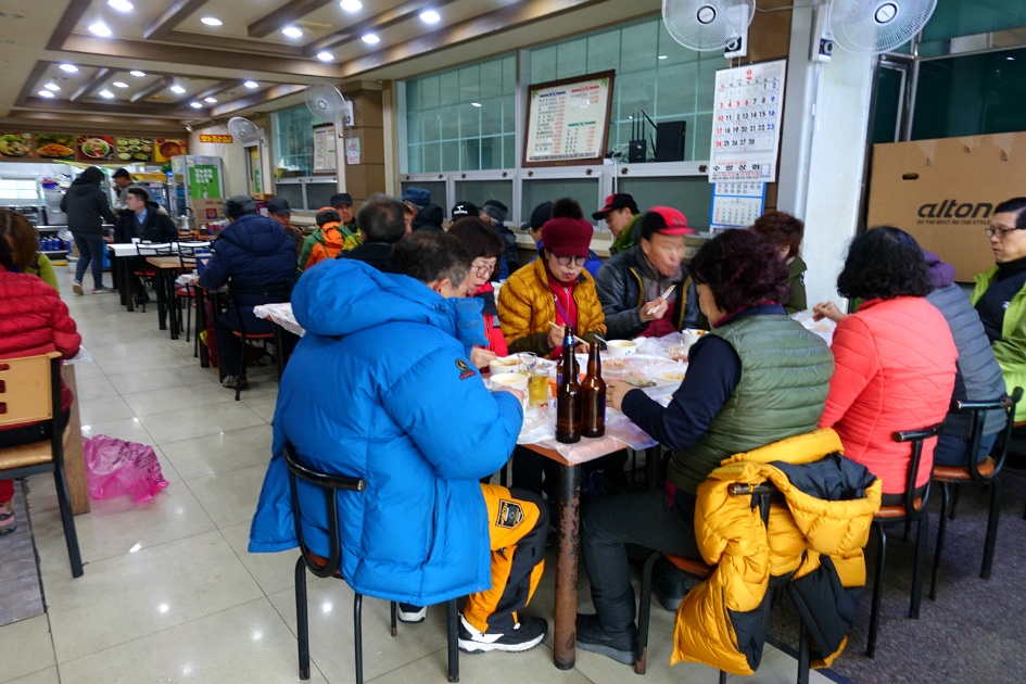 식당을 빌려서 준비해간 김치찌개와 하산주를 곁들여 점심식사를 마쳤습니다.