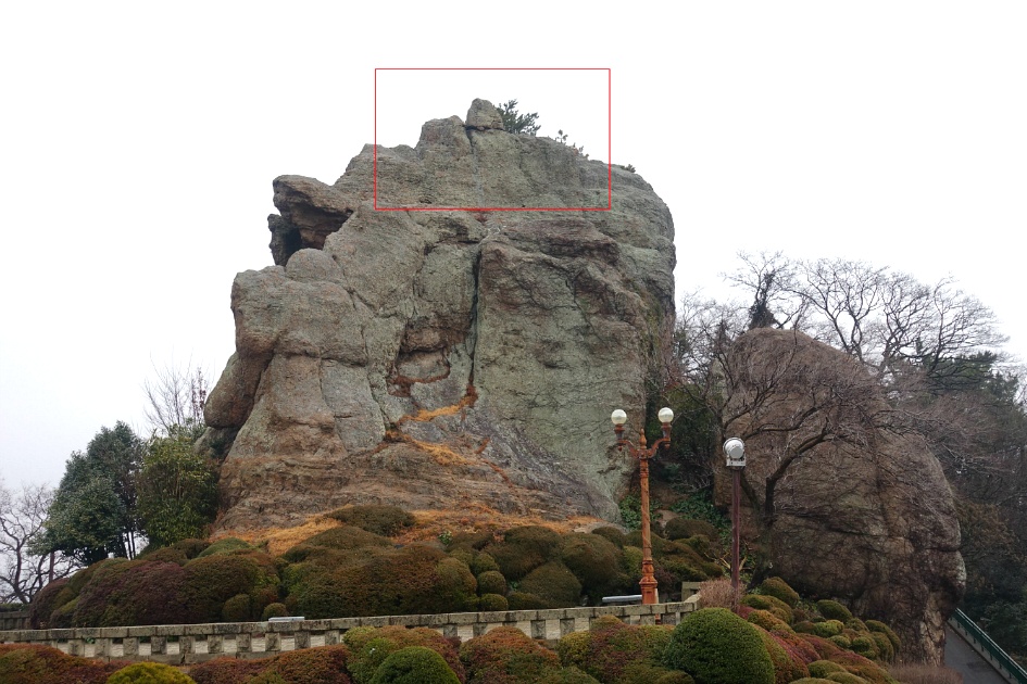 갓바위를 입구 반대편에서 본 옆모습