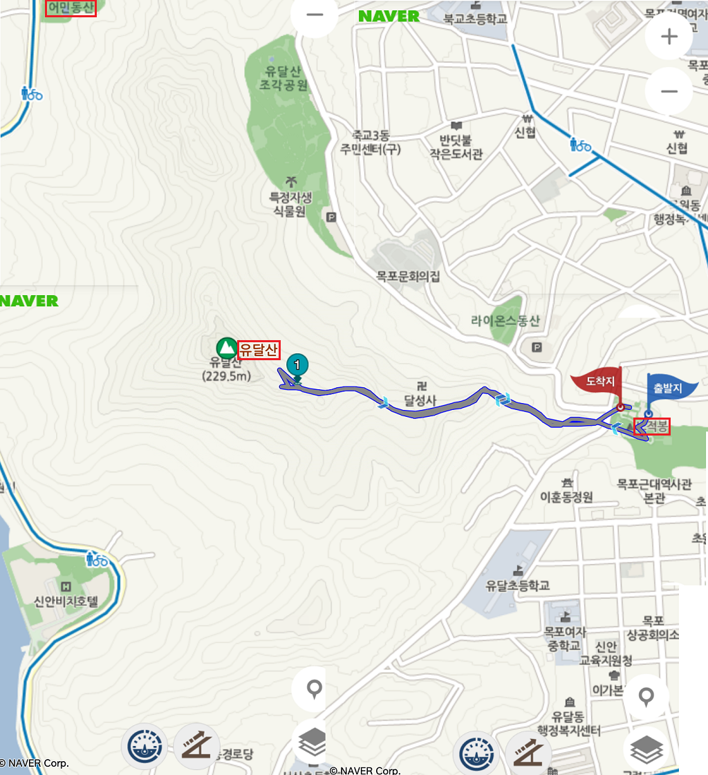 노적봉 아래 주차장에서 내려 노적봉을 거쳐 유달산 정상(일등바위) 앞의 전망대까지만 다녀 왔습니다.