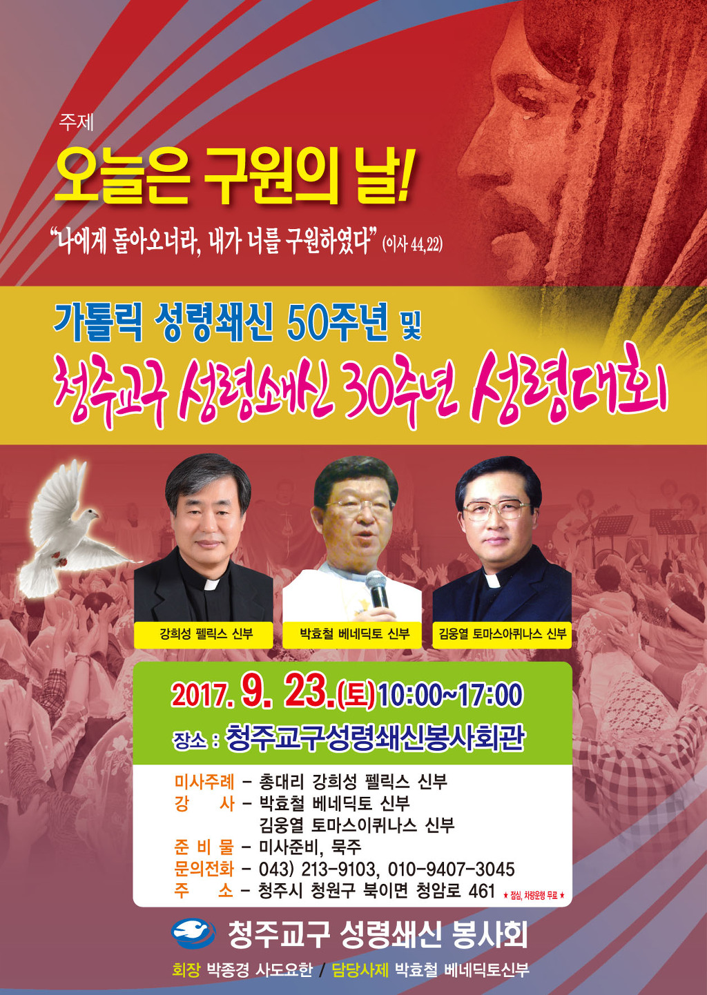 2017,9,23(토)가톨릭성령쇄신 50주년 기념및 청주교구성령쇄신 30주년 성령대회 작성자최글로리아|작성시간17.09.04|조회수1,427 목록 댓글 1 글자크기 작게가 글자크기 크게가 다음검색 현재 게시글 추가 기능 열기 북마크 공유하기 신고 센터로 신고 댓글 댓글 1 댓글쓰기 답글쓰기 댓글 리스트 작성자장미 | 작성시간 17.09.23 박분도신부님정말 못생기긴 참 잘나지못하였습니다요ㅋㅋ그나좀귀엽지요^^;;♡강론도잘하시고요 ㅎ 댓글 전체보기