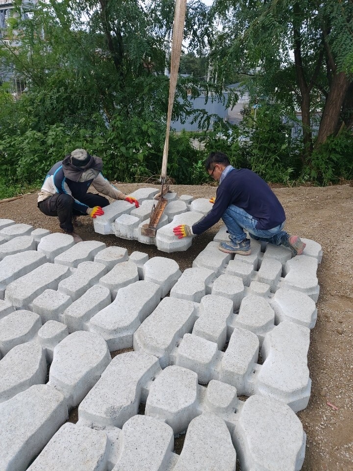 흑색으로 잔디블럭B와 색상차이가 있습니다. 주차장 시공,