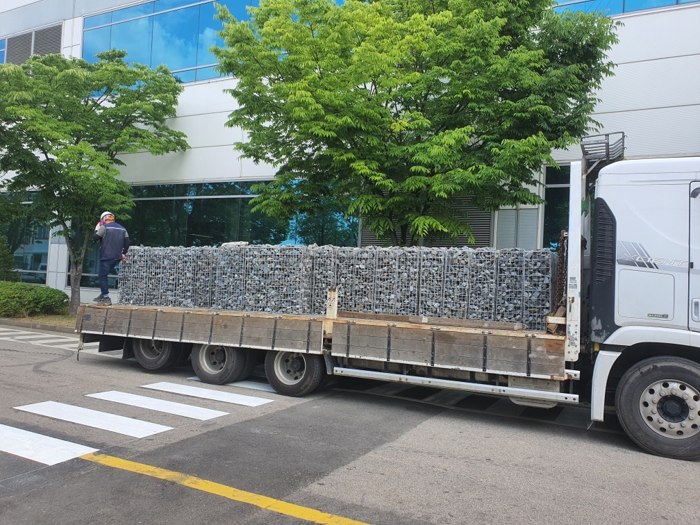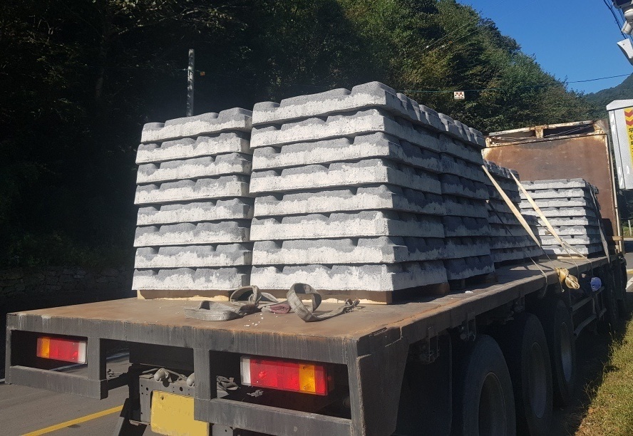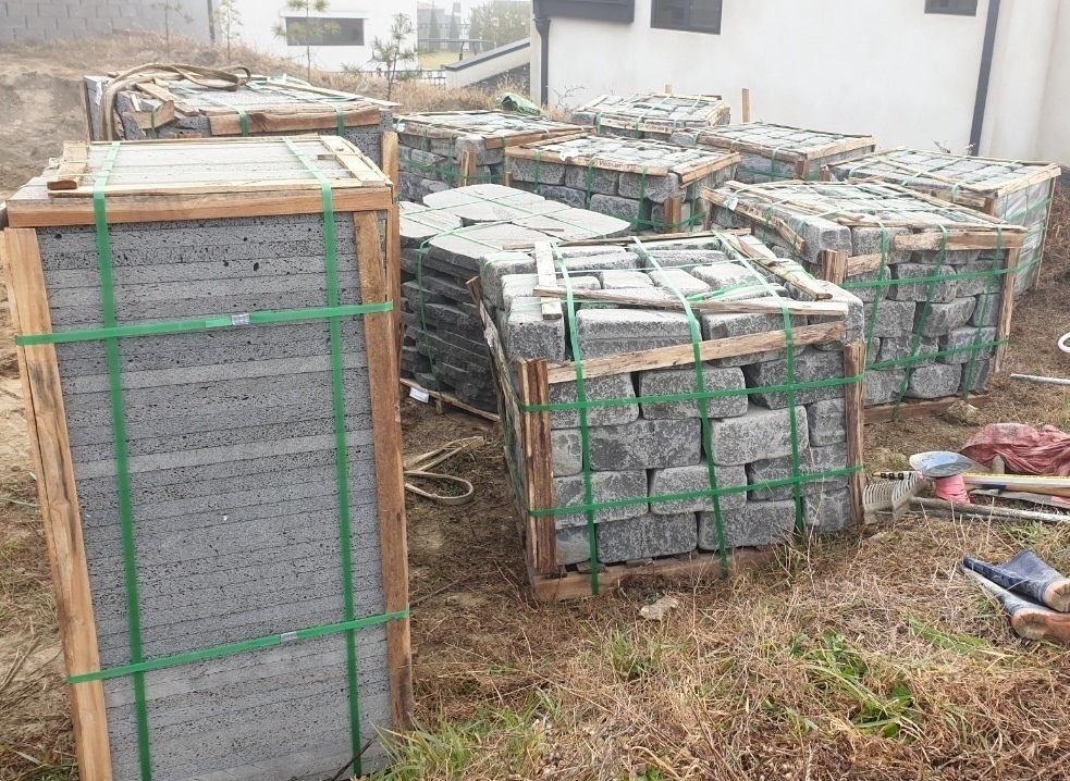물류창고 현무암 부정형 디딤석 50t 1파래트와