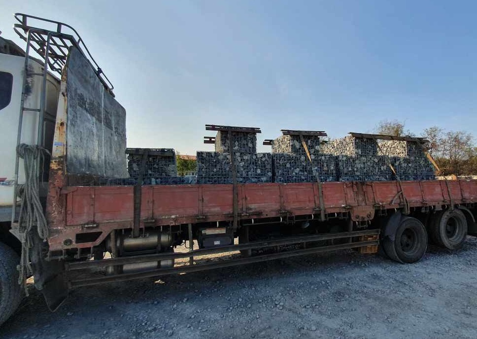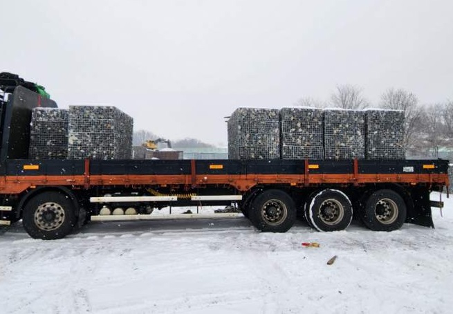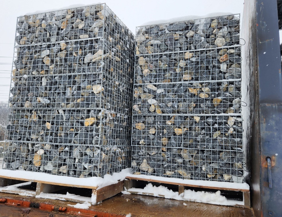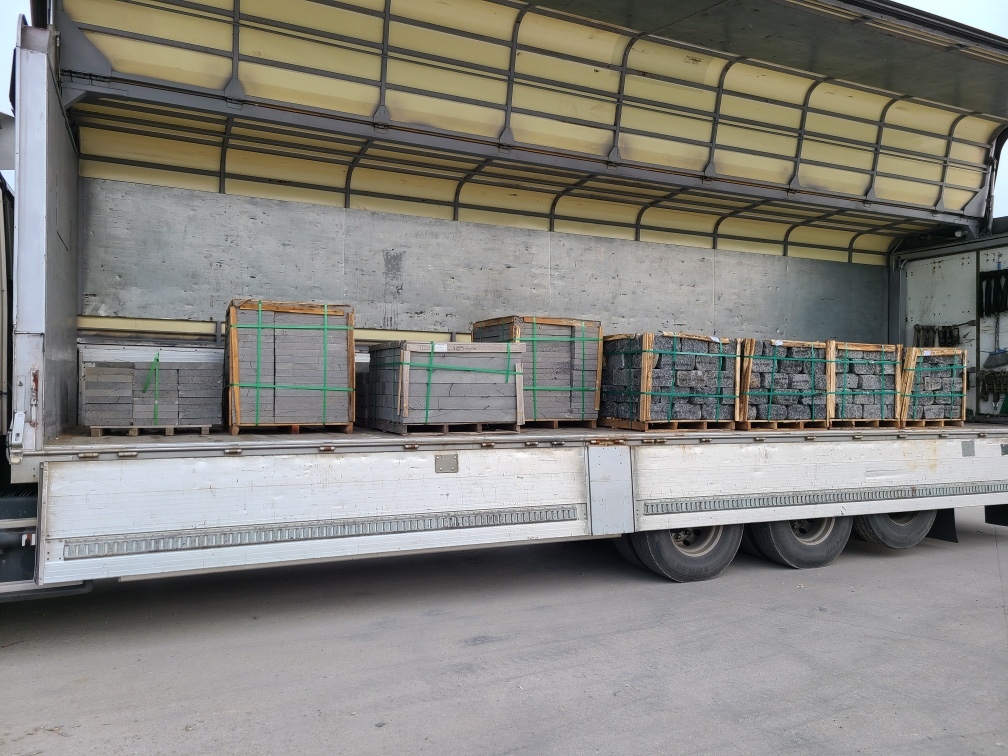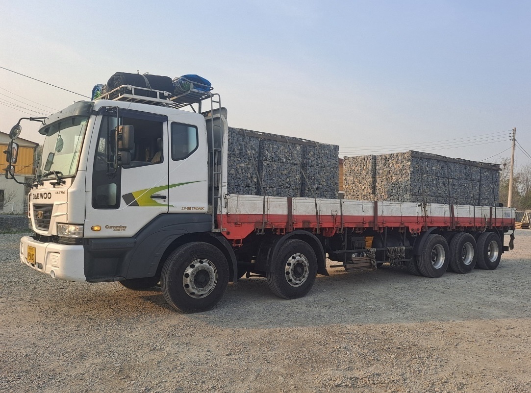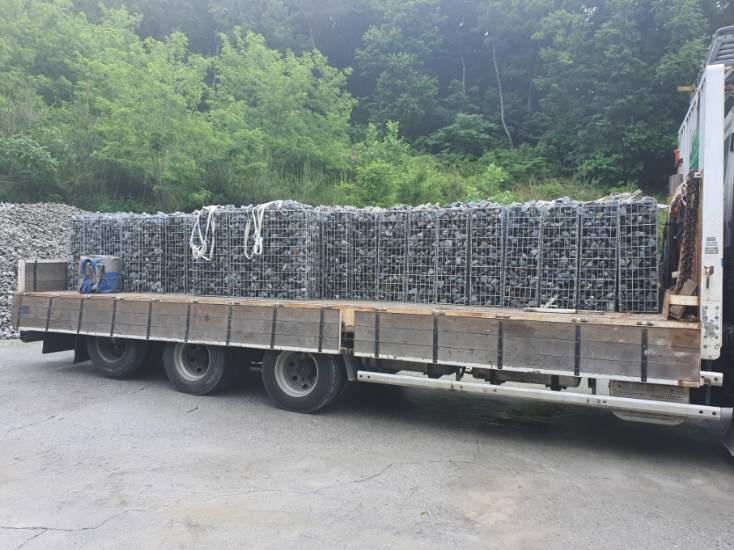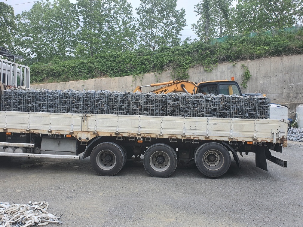현무암자연괴석4파래트, 잔디2파래트 혼합으로 5톤 윙화물차에 상차사진입니다.