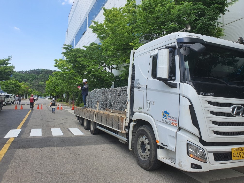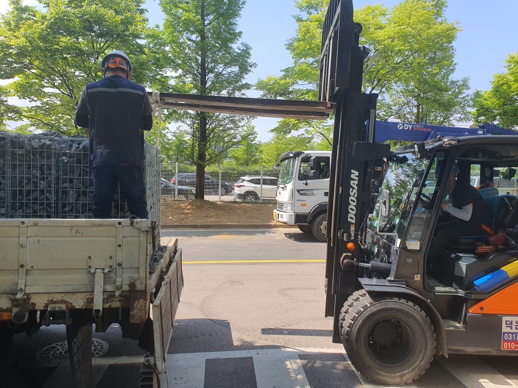현장에 이상태로 도착하면 지게차나 장비로 하차하시면 됩니다. 참고하세요.
