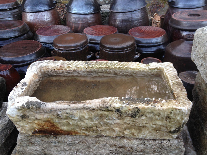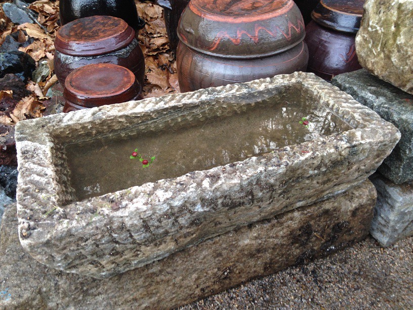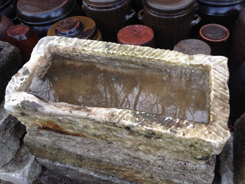 설명 : 아주오래된 천연자연석으로 조각한 물확으로