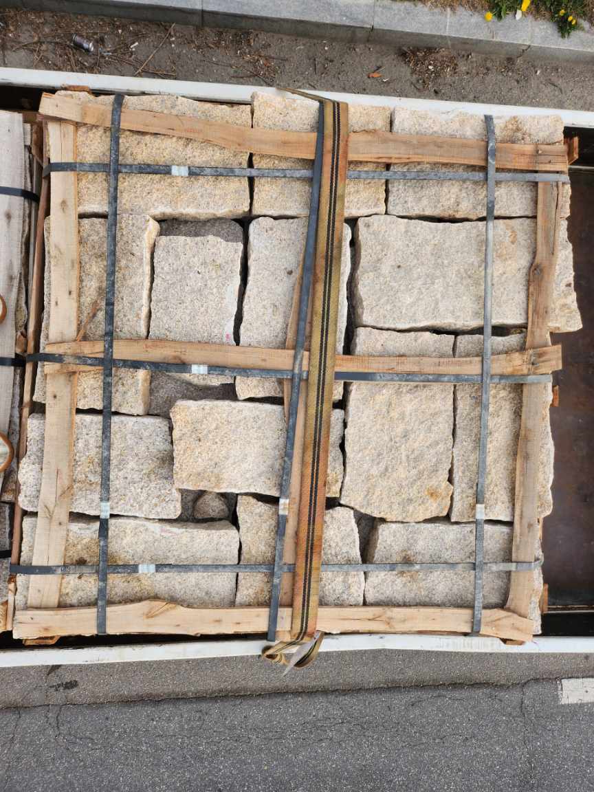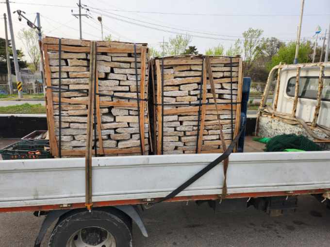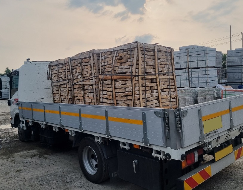 천경 황금 호피석 부정형 길이,폭200-500mm전후 두께40-60mm전후 1파렛 975,000원 사비석 붙임석 판석 석축공사 옹벽시공