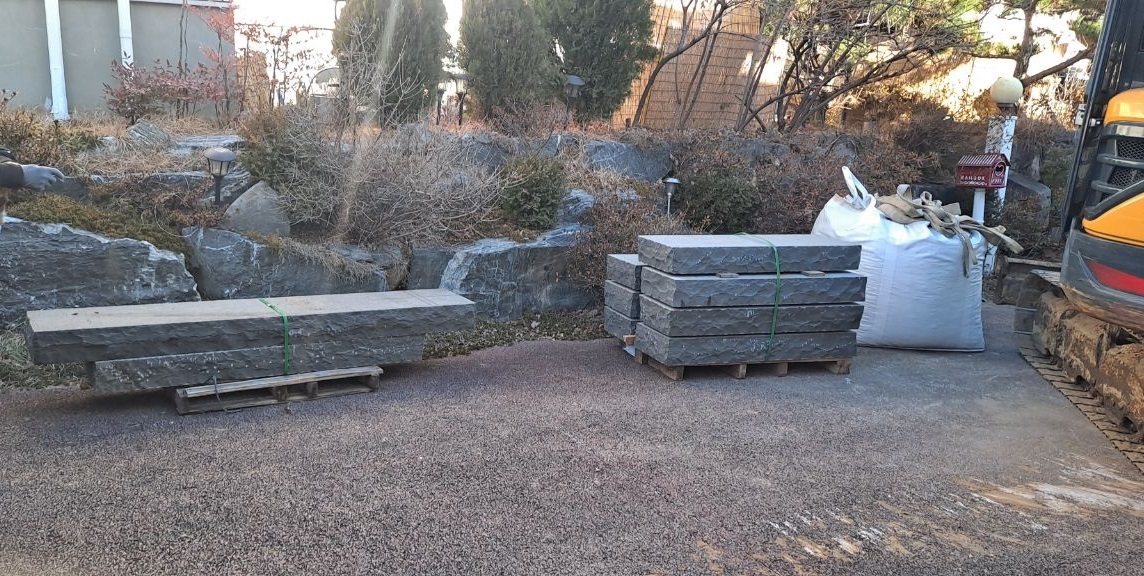 담장석시공, 골라서 담장석과 디딤석 시공하였습니다. 참고하세요.