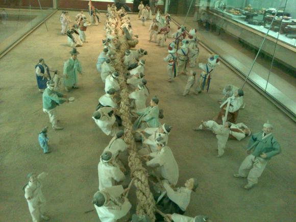 < 낙안읍성 마을 사람들이 줄 당기기 하는 모형 >