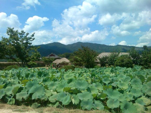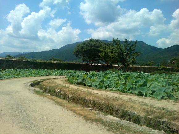 < 남측 성곽아래 연꽃 밭을 가르는 시골 동네길>