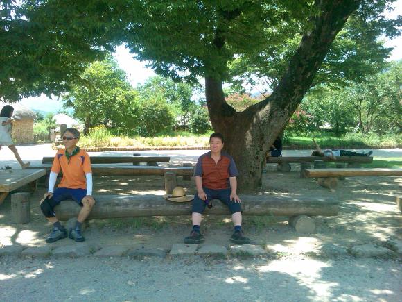 정오다! 뜨거운 태양빛 가마솥더위는 우리들을 지치게 한다. 낙안읍성 관아 앞에 건너편에 큰 나무 그늘이 보인다. 길거리에는 관광객들조차 드물다. 그늘에서 지친 몸을 위해 휴식을 하고 나니 이번엔 배가 고프다.