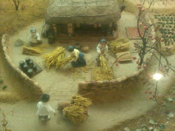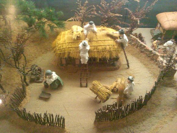비록 모형이지만 초가마을에서 그 옛날 정겨운 모습으로 닥아 오는 모형이 마치 타임머신을 타고 시간여행에 빠져드는 기분이다. 요즘은 초가집을 잘 볼 수가 없다. 젊은이들이 농촌을 떠나가 이엉을 엮어 올리는 대가 끊겼기 때문이다.
