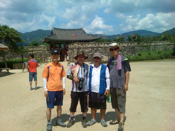 < 읍성 성곽위에서 사진 찍는 일행들 >