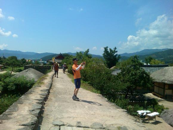 읍성에서 내려다 본 풍경은 근래에 자주 볼 수 없었던 초가집이 생소한 듯, 아니면 옛날이 그리워서 인가? 연신 사진을 찍고 있는 중년 할배들 모습이 재미있게 느껴진다.