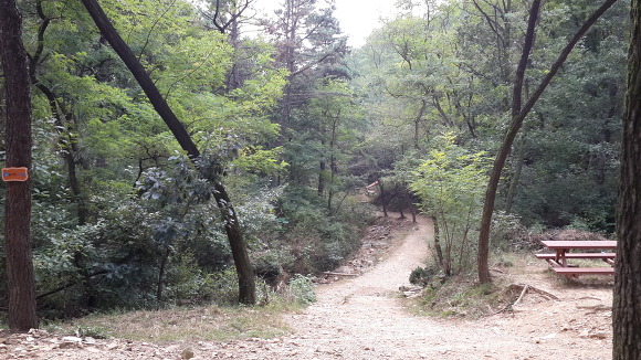 다 내려와서 다시 동문쪽으로 걷는데 숲이 우거진 계곡(?)길이 산행의 멋을 더해 주었다. 조금 걷다보면 정자가 우리를 맞이해 준다.