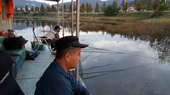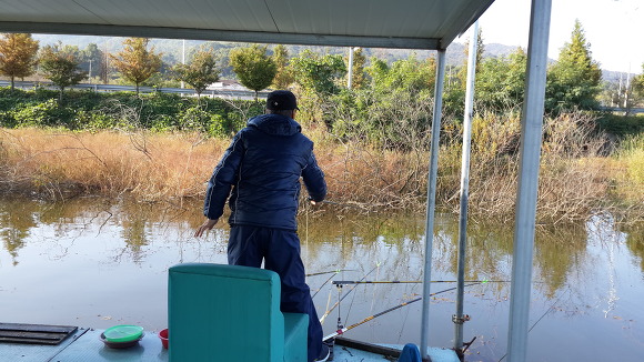 높은 하늘에 청명한 날씨는 가을을 말하는데 태양빛은 아직도 지난여름 폭염을 연상케한다. 따가운 햇빛이 내리쬐는 가운데 낚시대 편성을 마쳤다.