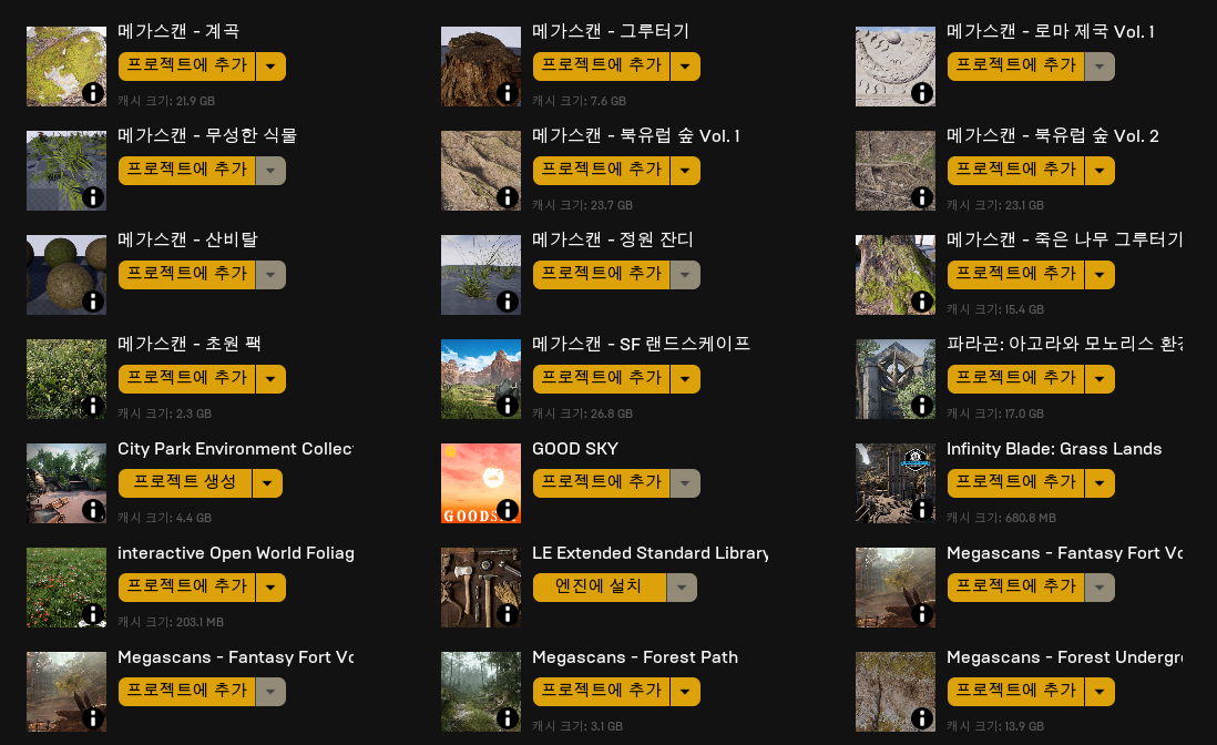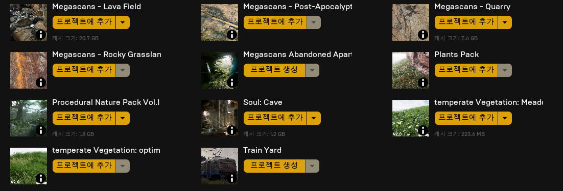 또 다른 문제는 저 에셋들 하나에 30GB나 되는 것들이 있어서