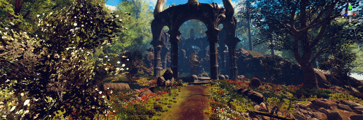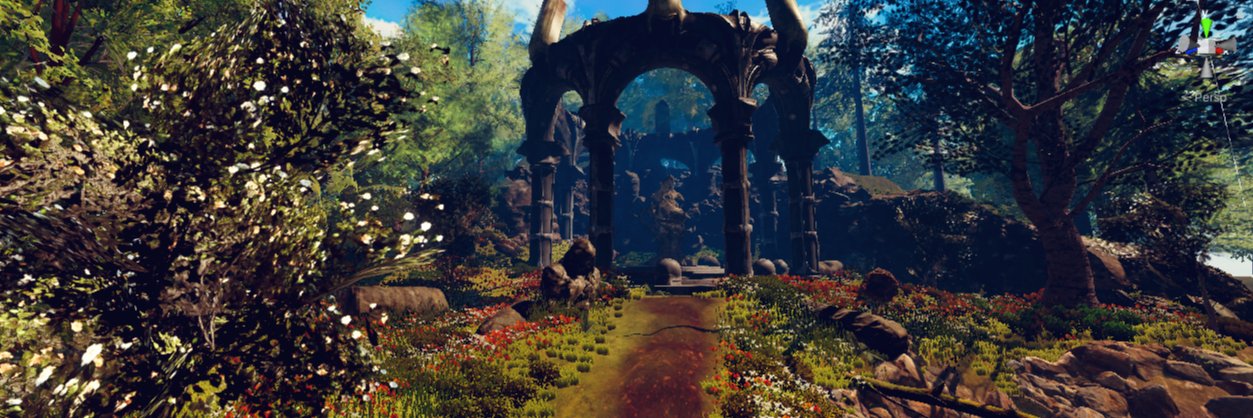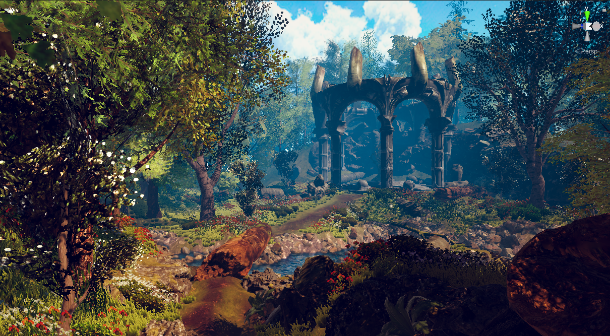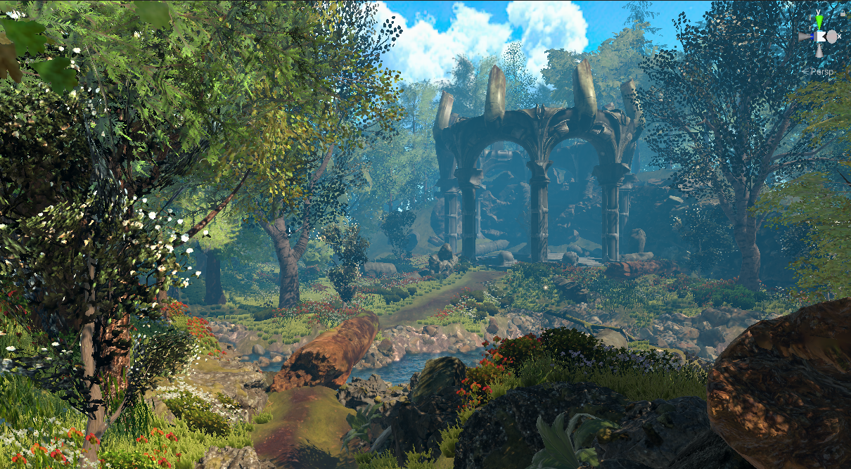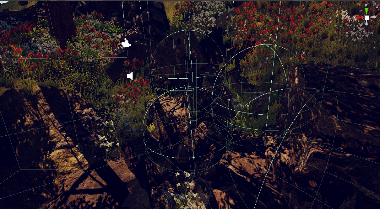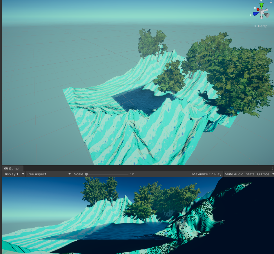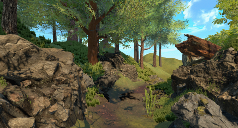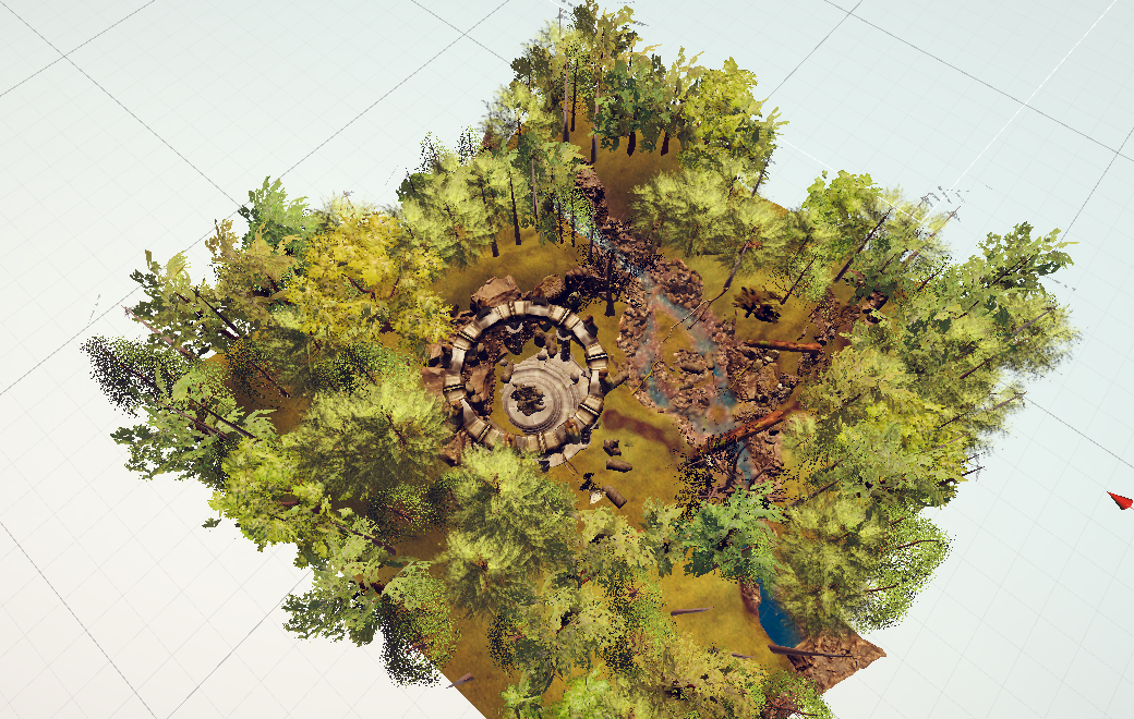 > 메쉬 돌과 터레인이 떠있게 되는데, 많이 어색한 부분은 터레인의 풀로 가려줬습니다.