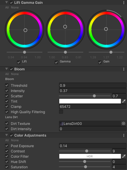 color adjustment에서 Post Exposure로 노출을 조절 해줬습니다.