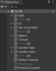 Hierachy창 입니다. 비슷한 것들 끼리 묶어줬습니다.