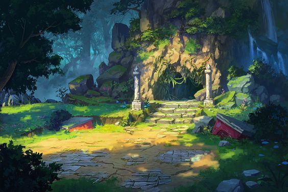 > 깊은 숲속 길을 걸어가 나오는 오래된 신전?을 생각하며 작업했습니다. 주변 풍경과 푸른 색감을 즐겨주셨으면 좋겠습니다.