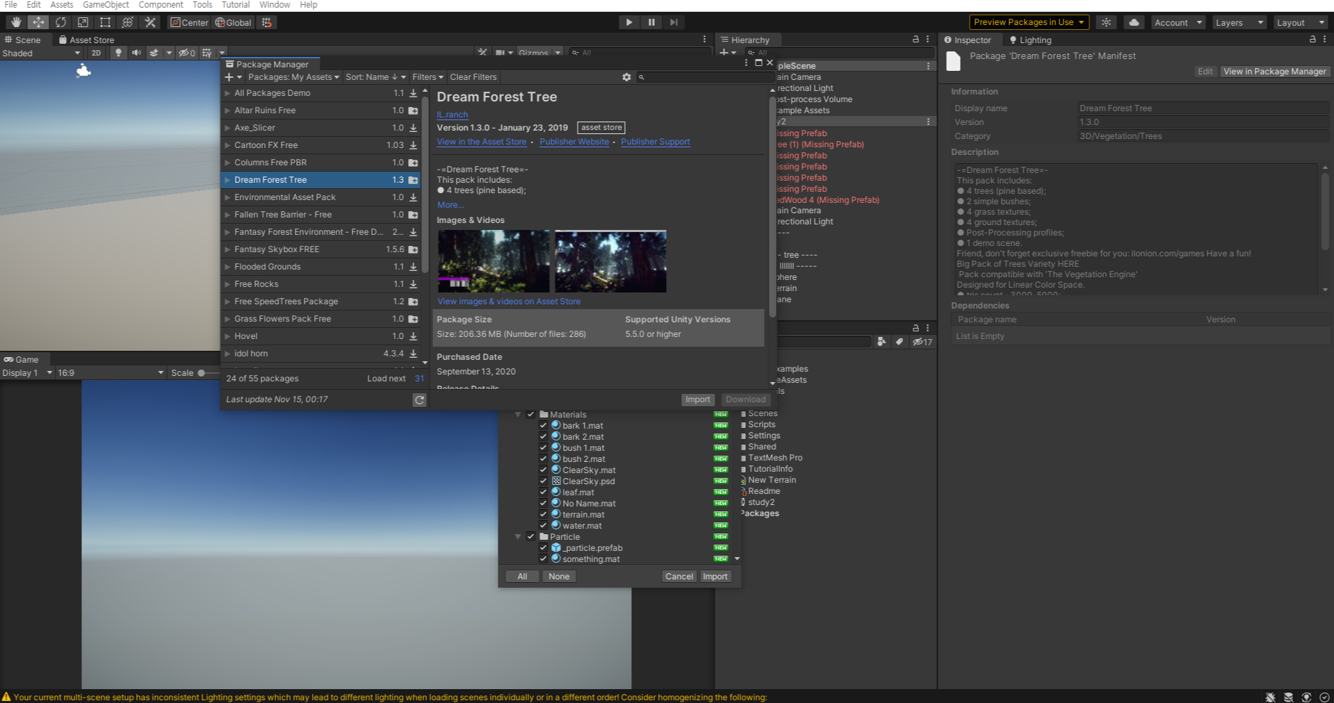 자료가 잘 나오지 않아 자연 에셋이란 에셋은 다 뒤져본 것 같습니다. 프로젝트에 추가 해 따올 수 있는 에셋만 쓰려고 했는데 원하는 만큼 자료가 나오질 않아.. 정말 착실히 용량 관리 해가면서 프로젝트 생성해서도 소스들을 따왔습니다. 현명한 선택이었던 것 같습니다