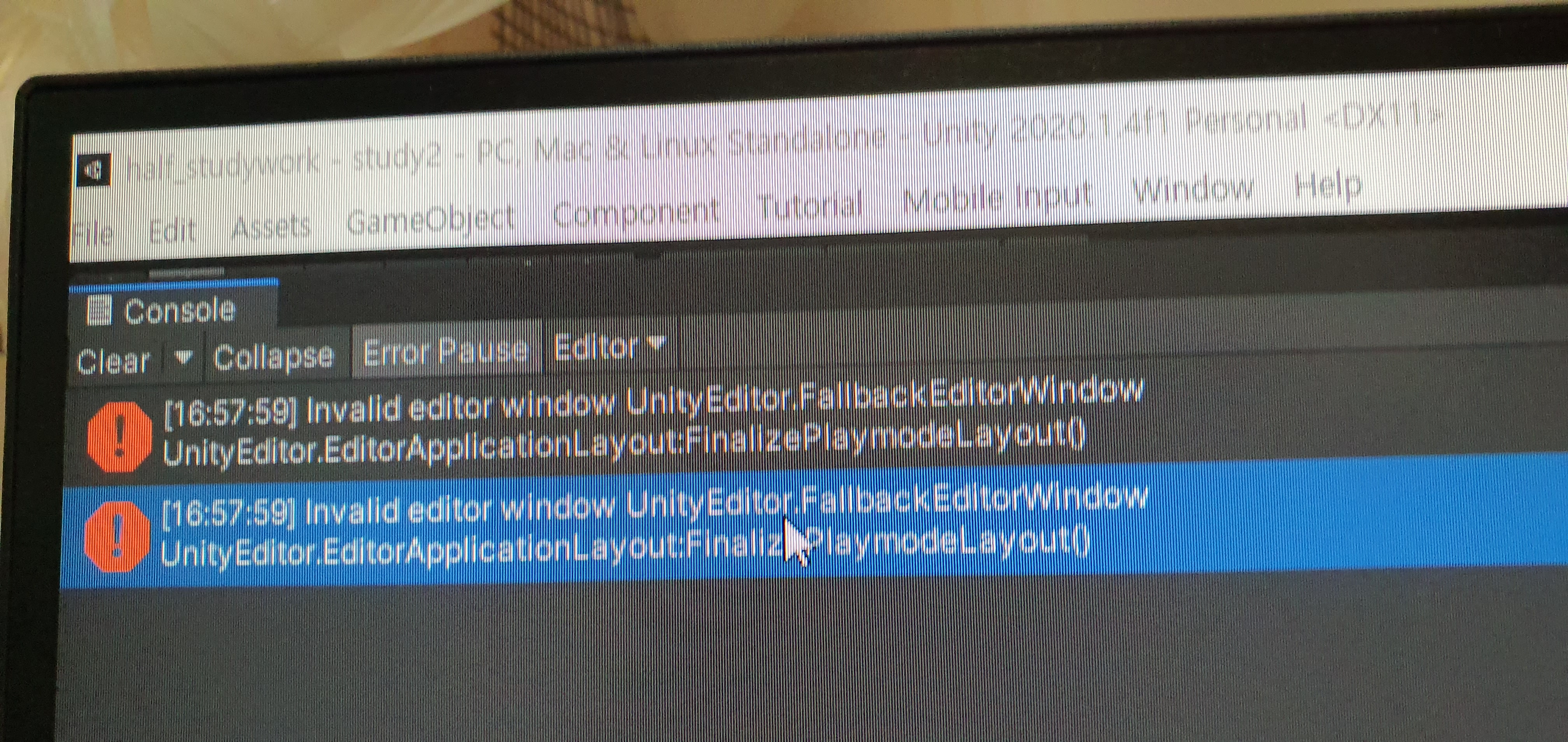 > 이게 아직까지도 뭔지 모르겠습니다. 언제부턴가 나타난 오류인데.. 클리어 하면 사라지다가 플레이 하면 어느센가 뿅 하고 생겨있고.. 유니티 껏다가 키면 다시 사라지기도 하던 미지의 친구입니다. 구글에 검색해 해결해 보려고 했는데.. 뭔가 엄청난 버튼을 눌러야 할 것 같아 포기했습니다... 현재는 또 사라져 있는 오류입니다. 허허 수줍음이 많은 친구야