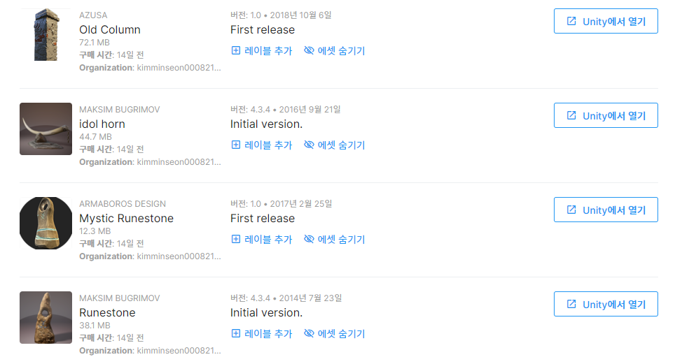 뭐가 어디꺼인지 알 수가 없을 것 이라는 생각이 들어 저는 언리얼 에셋의 제목을 써두고,