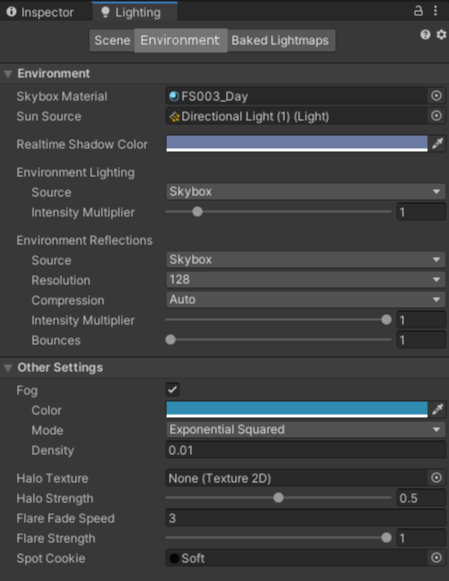 Fog는 맑은 하늘색과 비슷한 푸른색으로 넣어줬습니다.