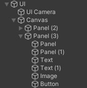 오른쪽의 화살표는 butten을 이용하고, 배경은 panel, 왼쪽의 로고는 image를 이용했습니다.