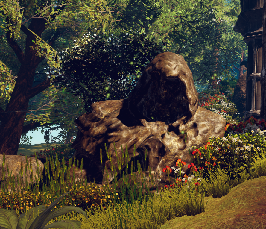 돌의 뒷부분을 최대한 terrain을 조절 해 다듬어 주고, 풀과 꽃들로 가려줍니다.