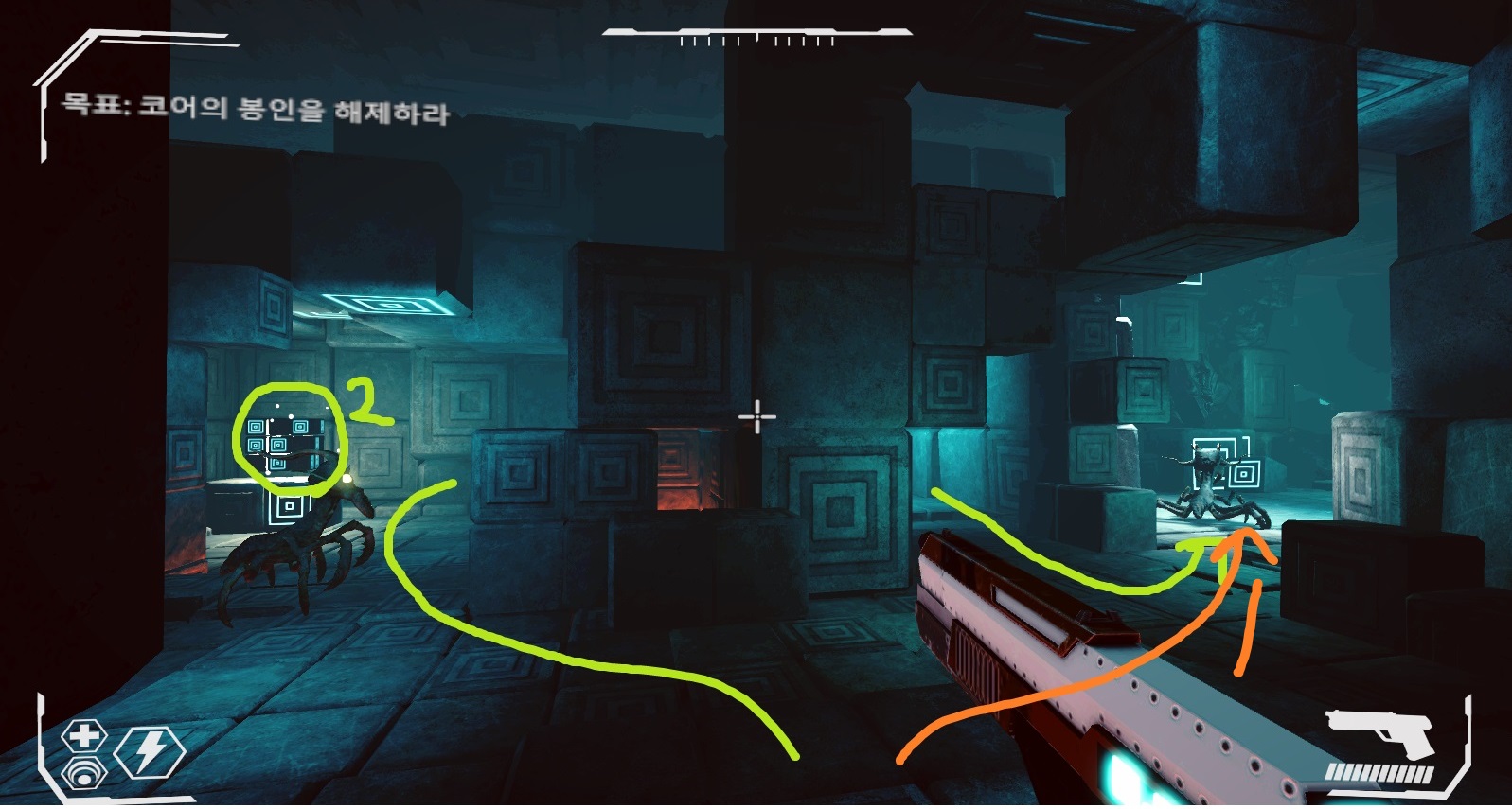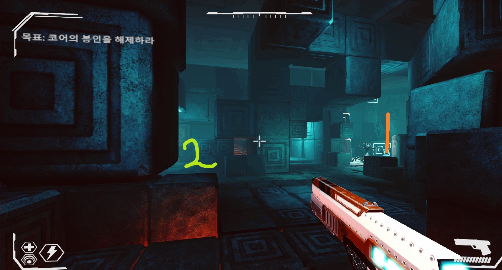 이런 관점에서 봤을 때 지하라는 이유로 전부 어둡게만 만들어버리면 유저들은 발을 디딜 수 있는 부분이 어디인지도, 적이 어딨는지도 파악할 수 없는 잘못된 맵이 될것입니다.
