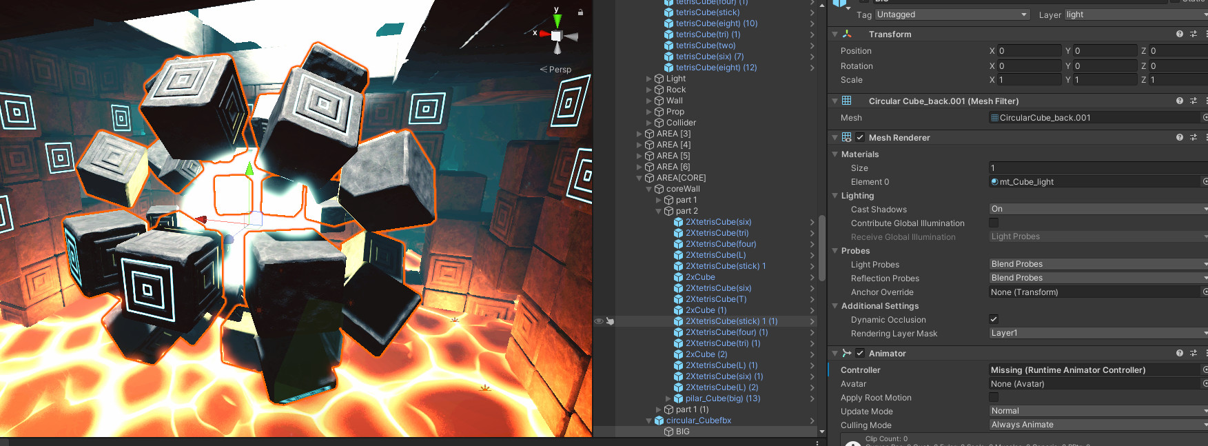 애셋의 경우 마음에 드는 게 없어서 바위 애셋을 제외하고 큐브랑 용암은 직접 만들었습니다.