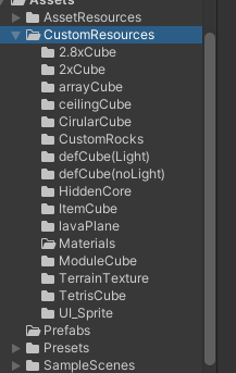 직접 만든 오브젝트는 CustomResources, 다운로드 애셋 리소스는 AssetResources로 나눴습니다.