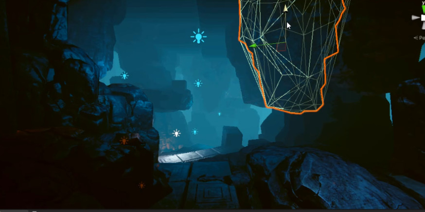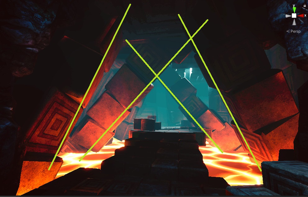 이에 따라서 장애물에 가려져서 보이지 않던 것이 보이게 되는 연출을 써보고 싶었고 플레이어 시점을 확인해가면서 그러한 배치를 했습니다.
