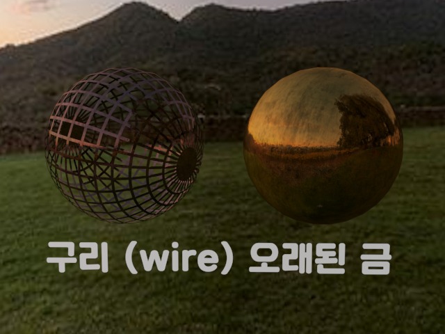 위의 금 재질에서 색만 약간 바꾸고 와이어프레임을 적용해보았습니다.