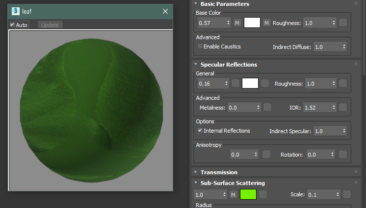 주광 역시 왼쪽 위에서 오도록 해주었고요. 주광과 꽃잎의 sss가 합쳐져서