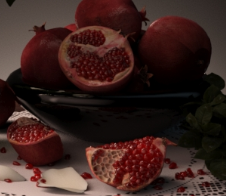 그리고 오른쪽에서부터 오는 약간 푸른색의 빛, 그 옆에 미세하고 자연스럽게 반사되는 석류의 붉은빛들..