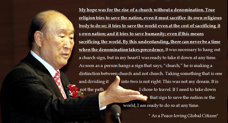 In particular, unification represents my purpose to bring about God’s ideal world. Unification is not union. Union is when two things come together. Unification is when two become one. “Unification Church” became our commonly known name, later, but it was given to us by others. In the beginning, university students referred to us as “the Seoul Church.”