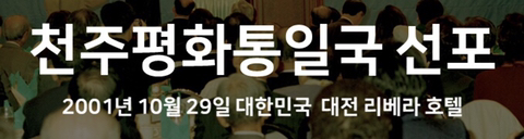 천주평화통일국 선포 (2001.10.29) 작성자대태양/김현수|작성시간19.01.03|조회수251 목록 댓글 0 글자크기 작게가 글자크기 크게가 천주평화통일국 선포 (2001.10.29) 다음검색 현재 게시글 추가 기능 열기 북마크 공유하기 신고 센터로 신고 댓글 댓글 0 댓글쓰기 댓글 리스트