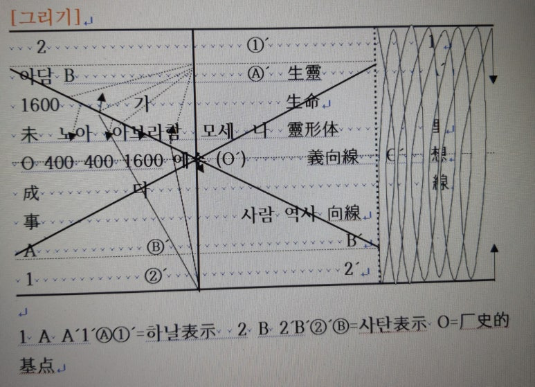 | 원리원본 (325) 그러므로 사탄은 하나님의 뜻이 흉내로 전부 한 성사를 보고자 하나 하나님이 승리하니 그 표시적 사실들이 세계전쟁을 통하여 발표되었다. 그러므로 지금 세계상 전쟁 역사를 볼 때 먼저 사탄 편 적 국가가 먼저 공세를 취하였으나 벌써 하나님은 기본 뜻 성사할 기본 국가진영을 우세하게 하였기에 사탄은 나중에 패하는 말로를 밟게 되었다. 그리하여 예수는 다, Ⓐ´점 향하여 본복귀(本復帰) 근본점을 향하여 돌아오게 되었다. 이렇게 되니 예수는 자기가 찾고자 하는 온 인류를 끌어서 목적지까지 가서 옮기는 Ⓐ´점까지 옮기는 역사가 2천 년 역사였다. 그 외 Ⓐ´①´간은 아담 해와가 타락 전 도달하지 못한 부분인 생령세계급(生靈世界級)이다. 이 급 시작이 즉 이상시작(理想始作)이다. 이 부분은 재림주가 강림하여 담당할 부분인 완성시기 되는 성약시대다. 그래서 재림이 이루어지면 역사의 방향선과 같은 연장선점 A´B´1´2´이란 곳에서 시작함이 아니고 O´점 기점과 함께 시작함은 기본점 복귀니 즉 타락하지 않은 부분 상점이니 ①´②´ 선에서 시작함은 사실이다. 이리하여 다시는 분기(分岐)도 합(合)함도 없는 영원 평형으로 취하여 나아가되 이 방향선을 중심하고 상 하로 한 회로를 중심으로 하면서 계속하게 하고자 하는 바가 하나님의 뜻이다. 위는 하늘이요, 땅은 아래라서 주고서 받은 이상상대로 나아가 상대이상(像対理想)의 성사를 목적으로 주고받은 완전을 표준하고 나아간다. 이것이 이상원리(理想原理)인데 나중에 논하기에 여기서는 생략한다. 사탄은 이와 같이 우리 사람을 놓치지 않으려고 발악하고 나아왔다. 사탄이 전부 패하면 선의 주권시대다. 그때는 선한 자만이 뜻 합의자만이 출세할 수 있는 시대다. 즉 이상시대다. |