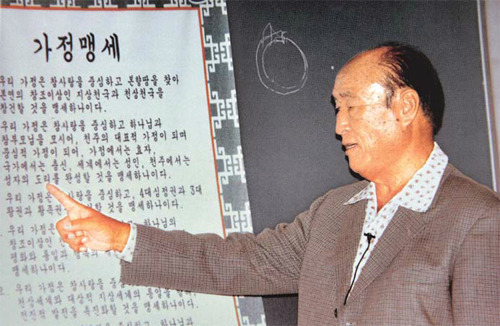 | 참가정과 가정맹세 (132) 제2장 가정맹세 각절 해설 2) 가정맹세 2절 해설 ① 대표적 가정, 중심적 가정이 되어 ㉯ 축복받은 가정은 본연의 가정과 같은 가치 - 3 축복받는 자리는 대한민국의 김 씨면 김 씨의 아들로 축복받는 것이 아닙니다. 하나님 직계의 타락하기 전의 아담과 해와와 같은 자리에서 축복을 받는 것입니다. 그 말은 뭐냐? 그 가정을 중심 삼고 전체를 대표해 있다는 것입니다. 아담 가정이 전체의 대표가 되고 아담 가정의 한 점을 중심 삼고 종족이 연결되고 씨족이 연결되고 세계까지 발전하여 하나 만들어서 꽉 눌러 놓으면 한 점을 중심 삼고 구형과 원형으로 발전하는 것과 같은 것입니다. 마찬가지로 중심자인 아담과 같은 본연의 씨의 자리를 자기가 다시 옮겨 받았기 때문에 아담이 이루려던 종족·민족·국가·세계 형은 급은 다르지만 같은 내용의 가치를 지녀야 한다는 것입니다. (263-196, 1994.10.4) 참부모의 가정, 이것은 씨입니다. 씨가 완전한 씨라면 그 씨를 심어서 번식된 수억만의 가정이 있더라도 씨는 같은 가치를 가집니다. 이퀄입니다. 하나님이 정착하는 가정의 기준은 몇 천대 몇 만대 몇 억만대 되더라도 같은 가치를 인정받기 때문에 씨는 이퀄입니다. 그렇기 때문에 우리 가정은 대표적 가정입니다. 대한민국을 대표했다는 것입니다. 그래서 맹세문 2에 ‘우리 가정은 참사랑을 중심하고 하나님과 참부모님을 모시어 천주의 대표적 가정이 되며’라고 한 것입니다. 대표는 꼭대기입니다. 그 다음에는 중심가정이 되는 것입니다. 종횡으로 연결하게 되면 종횡이 연결되는 자리입니다. 대표적 가정이요, 중심가정입니다. 그래 놓으면 모든 우주는 여러분의 것입니다. (282-319, 1997.4.7) |